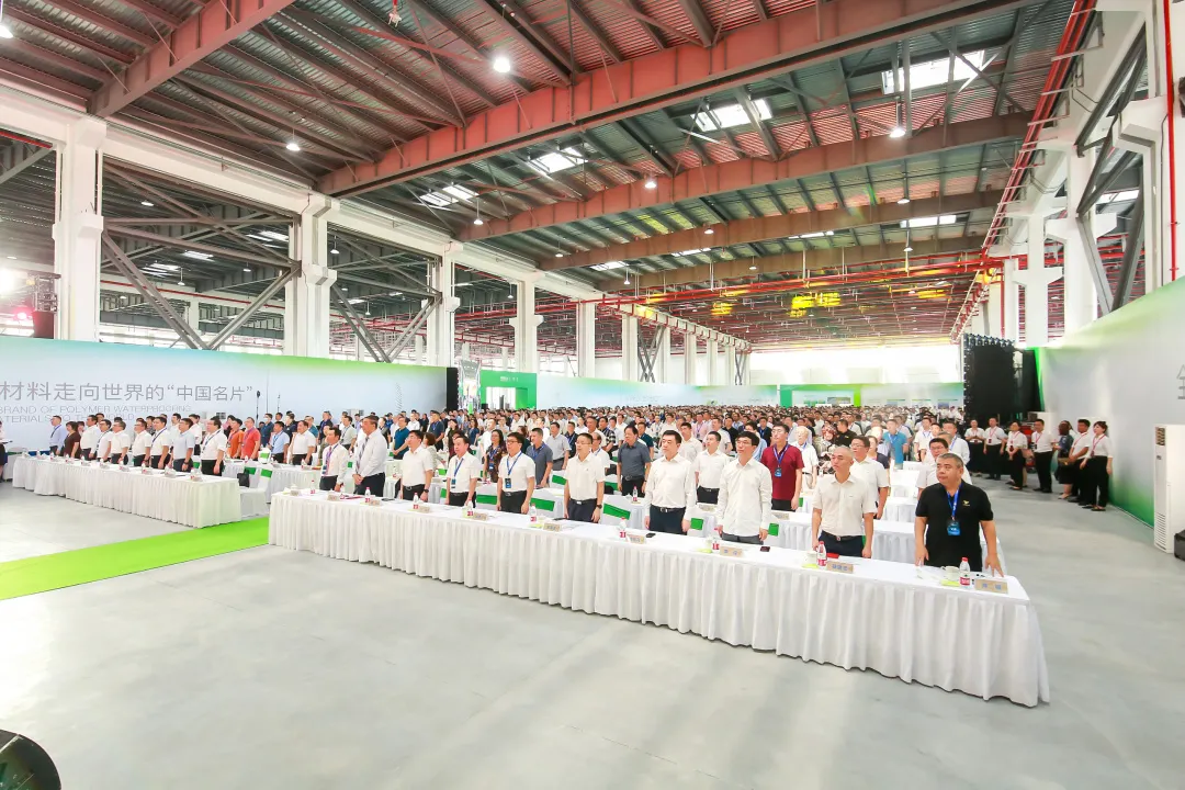 上午9點,開業典禮正式啟動,全體嘉賓起立唱響中華人民共和國國歌,在如火的驕陽下,迸發出建功新時代的革命激情。現場播放了高分子產業園宣傳片,全面展現凱倫在高分子領域所投入的尖端設備與技術力量,開啟了中國高分子建材領域的又一嶄新篇章。