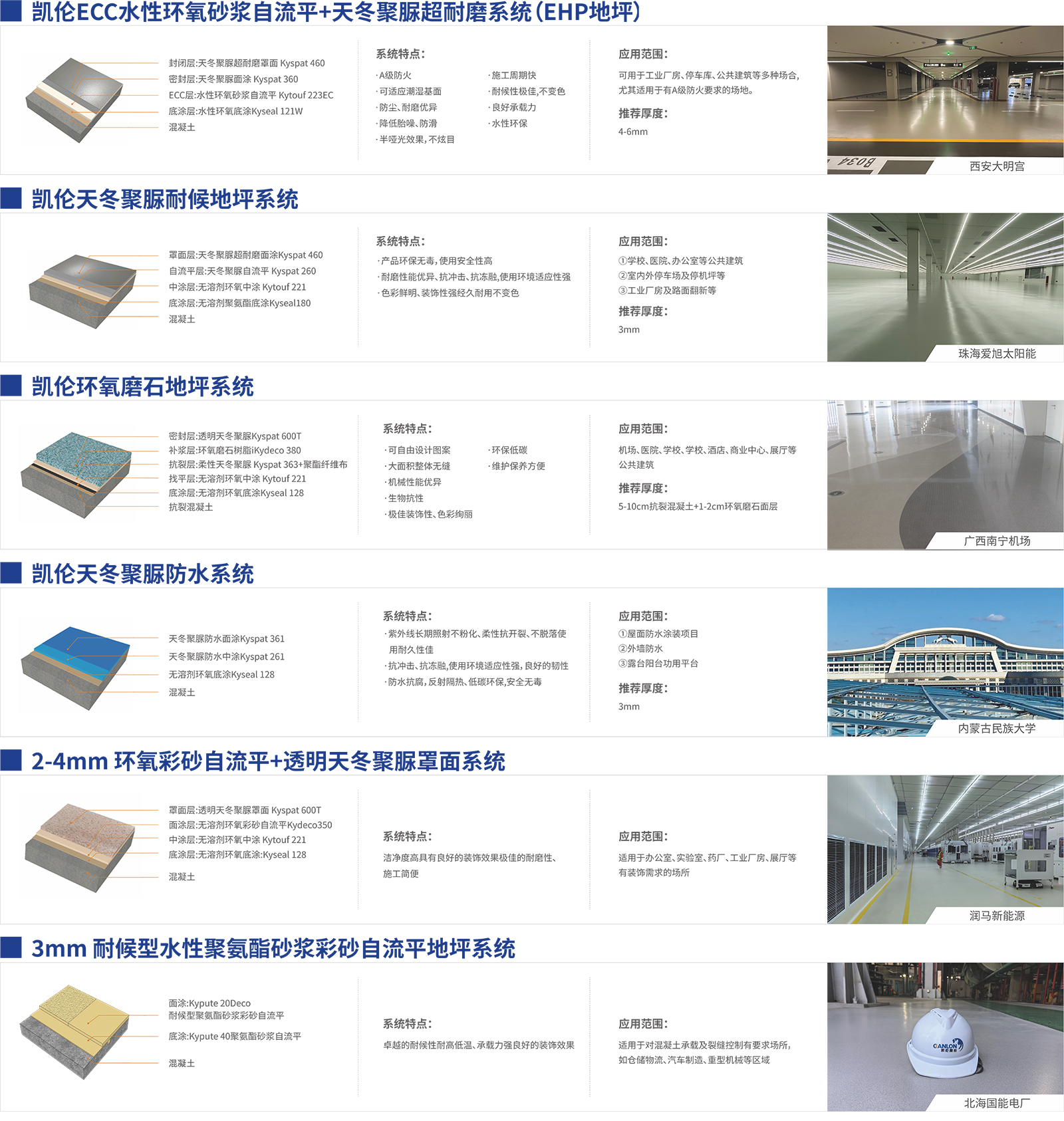 凱倫股份地坪解決方案根據使用者要求和不同使用環境的特點而提出。作為地坪行業系統化服務商,我們一直把綠色、環保作為企業的精神旗幟,在研發、生產、和施工的過程中身體力行,保證所使用的地坪材料均為無溶劑產品或者水性產品,用行動引領地坪材料的發展未來。