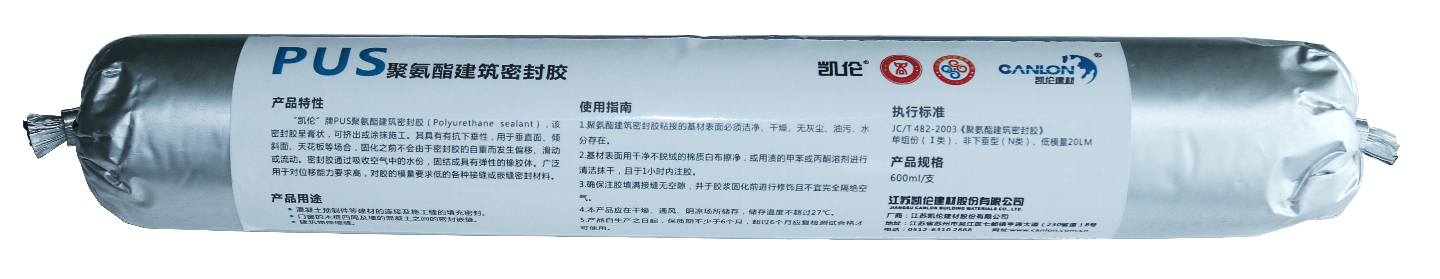 “凱倫”牌PUS聚氨酯建筑密封膠(Polyyurethane sealant),該密封膠呈膏狀,可擠出或涂抹施工,具有抗下垂性,用于垂直面、傾斜面、天花板,固話之前不會由于密封膠的自重而發生偏移、滑動或流動。密封膠通過吸收空氣中的水分,固結成具有彈性的橡膠體,廣泛用于對位移能力要求高,對膠的模量要求低的各種接縫或嵌縫密封材料。